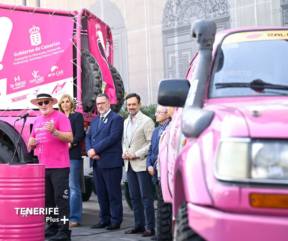 El acto de salida se celebró este lunes, 14 de octubre, en el Cabildo Insular, con la presencia del vicepresidente Lope Afonso; el consejero de Educación, Formación Profesional, Actividad Física y Deportes, Poli Suárez; la consejera insular de Deportes, Yolanda Moliné; la presidenta de la Fundación Carrera por la Vida, Brigitte Gypen; el presidente de la Federación Canaria de Automovilismo, Miguel Ángel Domínguez, y el propio Rafael Lesmes. Desde el puerto de Santa Cruz de Tenerife, el vehículo rosa partirá rumbo al Dakar 2026 en Arabia Saudí.